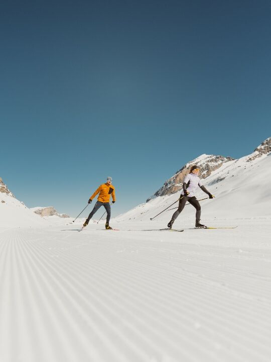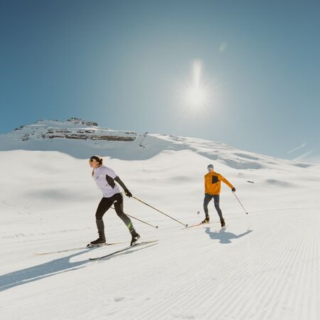On the Gemmi, you can glide along snow-sure high-altitude trails through a breathtaking winter landscape. Whether you choose classic cross-country skiing or skating, exploring the Gemmi offers both a great workout and a wonderful experience of nature all in one.