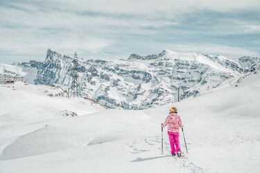 The Gemmi is a particularly versatile snowshoeing area. Thanks to the Gemmi Cable Car from Leukerbad, you can reach the Gemmi plateau in just a few minutes, and your snowshoe hike can begin right at the mountain station.