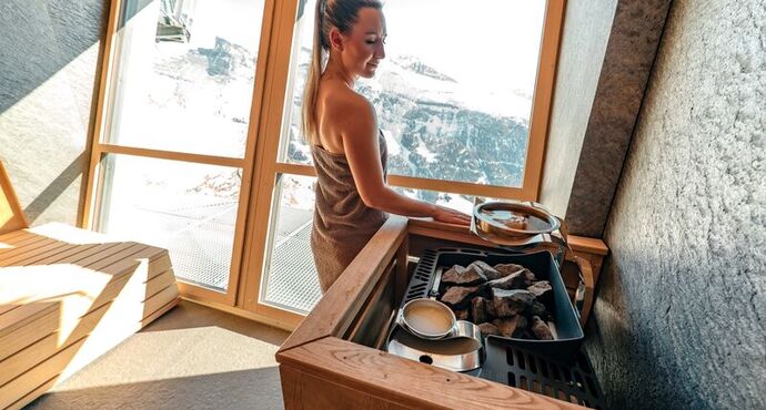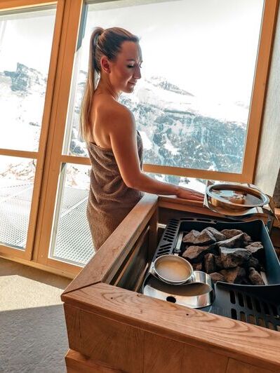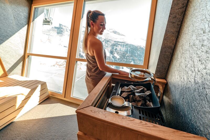 Our wellness area at 2,350 meters has a special quality. The warmth feels more intense, and the silence carries further.